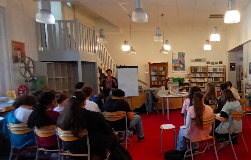 Les élèves de 3ème2 ont rencontré ANJALE dessinatrice et autrice de BD le vendredi 23/05 au CDI du collège.