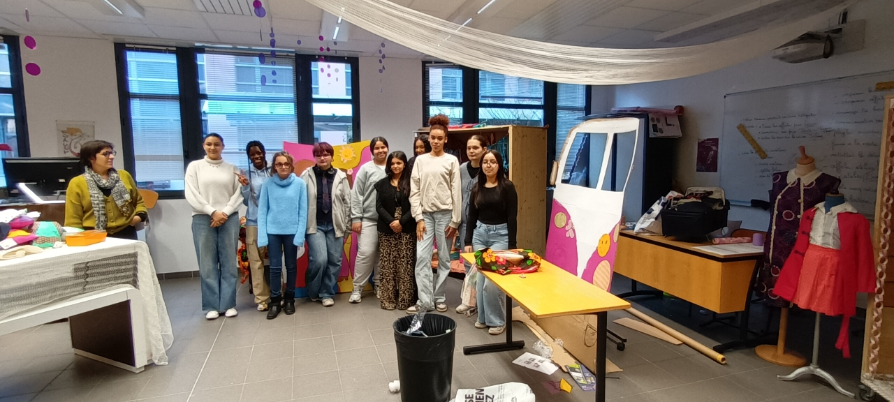 L’établissement est petit, environ 200 élèves, et l’ambiance est agréable, puisque tout le monde se connaît. Deux lycéennes nous ont guidés pendant la visite et nous ont expliqué les différentes filières. Nous avons visité plusieurs ateliers, comme l’atelier couture et l’atelier pressing.