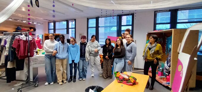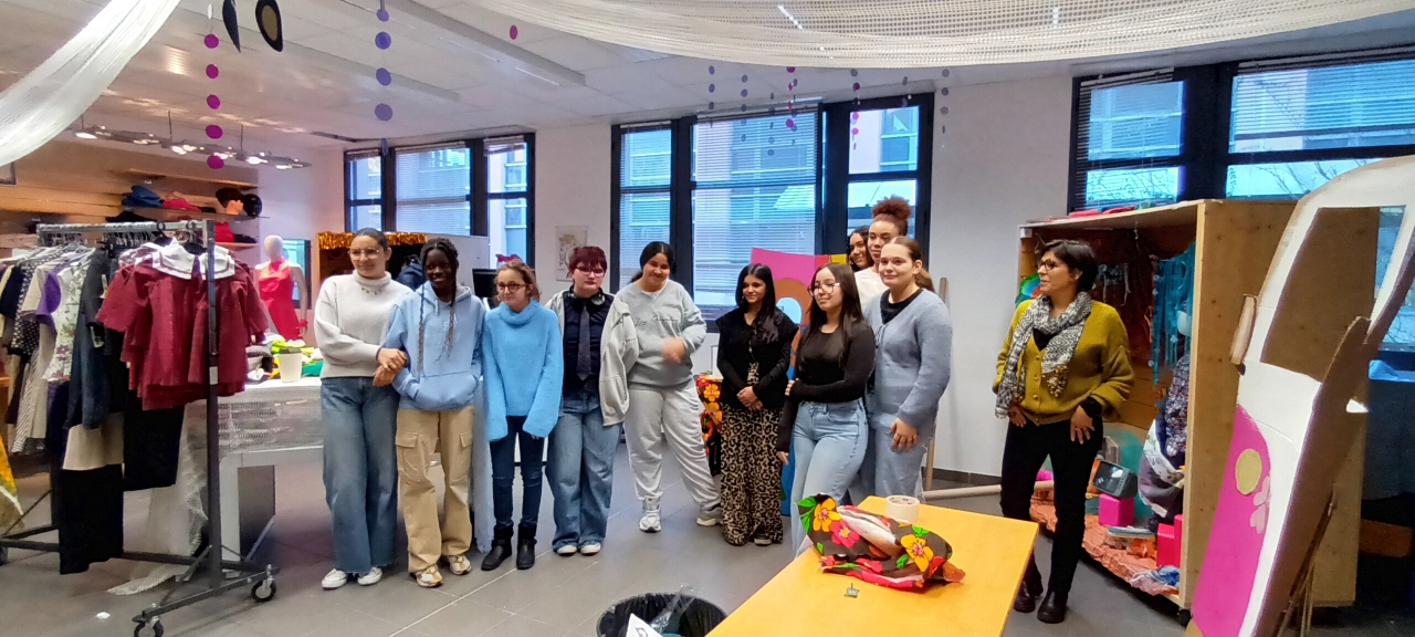 Dans le lycée, il y a aussi un free-shop, où les élèves et les personnels peuvent prendre gratuitement deux vêtements par semaine : ce sont des habits et accessoires donnés par des particuliers, qui sont ensuite nettoyés et repassés par les élèves et mis à disposition au free-shop. C’est une façon intelligente d’agir contre la pollution liée à la fast fashion ! L’établissement a également un partenariat avec l’association Emmaüs de Firminy. Enfin, le lycée organise aussi chaque année un défilé de mode où tous les élèves participent, selon leurs envies et leurs compétences.